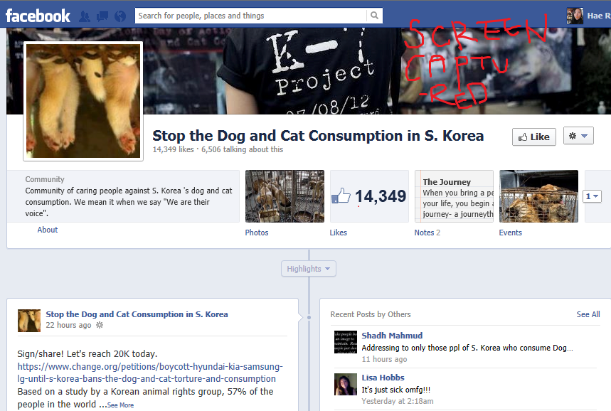 “Stop the Dog and Cat Consumption in Korea” is a Facebook group devoted to battling dog and cat consumption in Korea. It currently has 14,329 likes and I am not one of them. I was blocked from the page, after I shared a good blog post about dog-eating in South Korea. “Ask a Korean” is one of the most well-known blogs on anything Korean, and The Korean (as the blogger calls himself) has been cited in The New York Times, The Guardian, Wall Street Journal, Sueddeutsche Zeitung and more. Sometimes his blogs are slightly longwinded—okay, his post “Dog—It’s What’s for Dinner” is seven pages long in Microsoft Word—but they’re well-researched; and naive little me, I thought The Korean would be helpful to the angry activists. I guess the angry activists weren’t too pleased about my help.