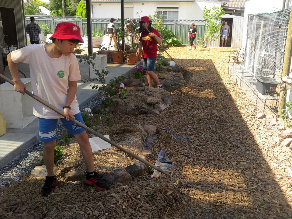 We worked between three to four hours a day in return for free meals and housing. Here the children are fixing up the garden at Bissy’s Cafe, owned by the Rossiter family in Orange.